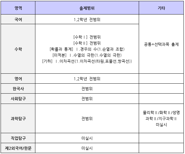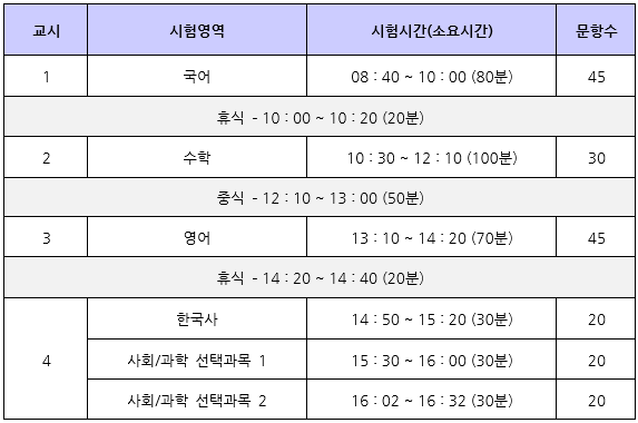 ▷ 영역 : 국어, 수학, 영어, 한국사, 탐구(사회/과학)